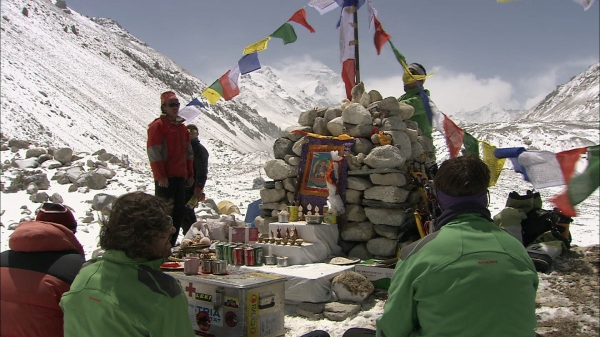 “I have already been to the South Pole, have shot footage in winter in the Altai Mountains of Mongolia, but this trip was without doubt the greatest adventure of my life…” claimed director Heinz Leger after the four months’ filming in Nepal and Tibet. Together with his camera crew Wolfram Wuinovic, Josef Neuper and Stefan Fritsche, he accompanied the four Sherpas Phurba, Ngima, Ngima Tenji und Gelu not only on Mount Everest but also into their homes – in the isolated Makalu Valley, the bustling hub of Himalayan tourism Lukla, and the chaotic streets of the capital, Kathmandu.